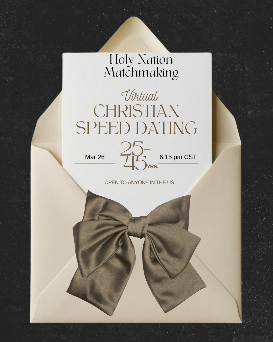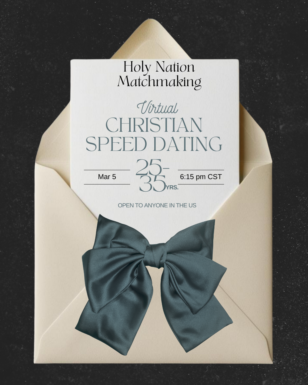 We welcome you to join us on Zoom every Thursday evening for a virtual Christian speed dating event that’s open to anyone in the US, ages 25-45 (starting in April 2026). Expect to meet 6-10 Christian singles in an intentional space where conversations and connections are nurtured. Tickets are $25 (in April).